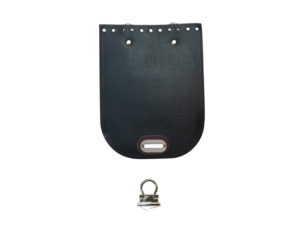Klappe mit Verschluss 23 × 17 cm + kurzer Griff (doppellagiges Leder mit Halbringen), 11 vorgestanzte Löcher (4 mm)