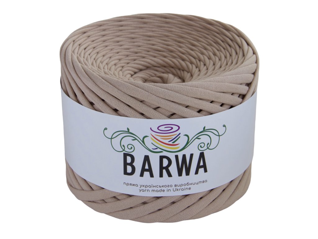 - Baumwolltextilgarn (T-Shirt Yarn) BARWA Breite 7-9 mm ist das vielseitigste, die sog. Standardbreite des Garns. Es eignet sich sowohl zum Stricken als auch zum Häkeln und kann auch für Makramee-Produkte verwendet werden. Das Garn wird aus hochwertigen türkischen Stoffen mit einem regelmäßigen Streifenschnitt über die gesamte Länge hergestellt.