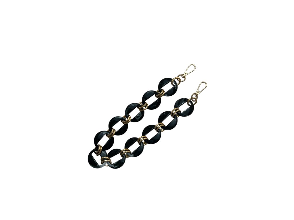 Design-Leichtkette mit Karabinerhaken für Handtaschen und Taschen. An den Enden befinden sich praktische, zu öffnende Karabinerhaken, die einfach an der Handtasche oder Tasche befestigt werden können.