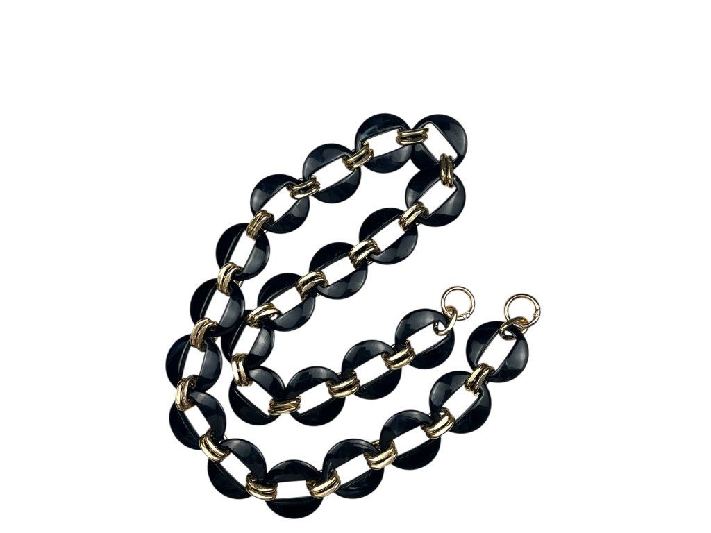 Leichte Designerkette mit Karabinerhaken für Handtaschen und Taschen. An den Enden befinden sich praktische, öffnbare Karabiner, die sich einfach an der Handtasche oder Tasche befestigen lassen.