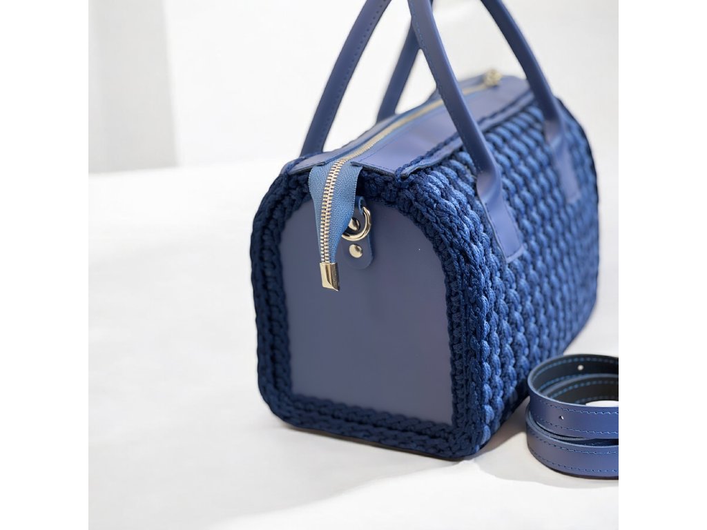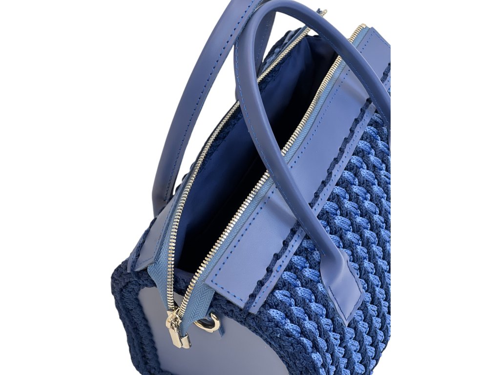 Elegante gehäkelte Tasche ELIZABETH. Komponenten aus echtem Leder, mit Baumwollfutter und einer Tasche. Die Tasche wird mit einem Reißverschluss geschlossen. Ein zusätzlicher langer, verstellbarer Riemen von 120x2 cm ist ebenfalls erhältlich.