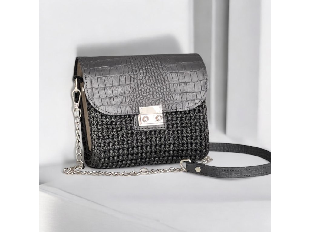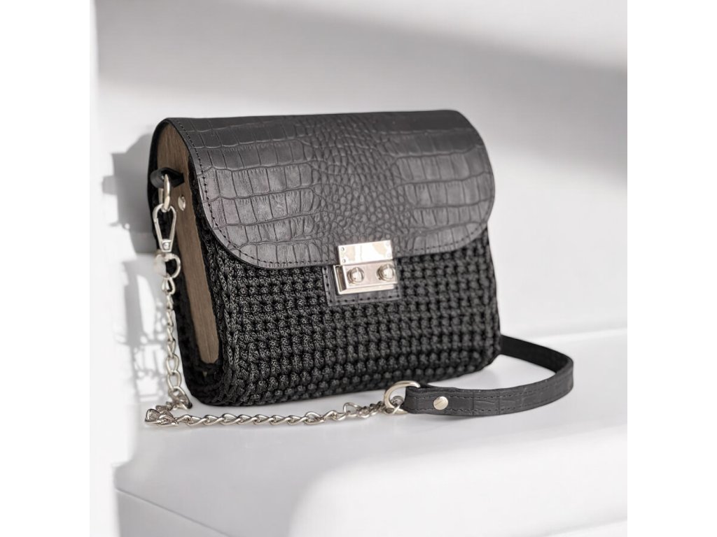 Gehäkelte Handtasche 'SOFIA' / Schwarz KROKODÝL