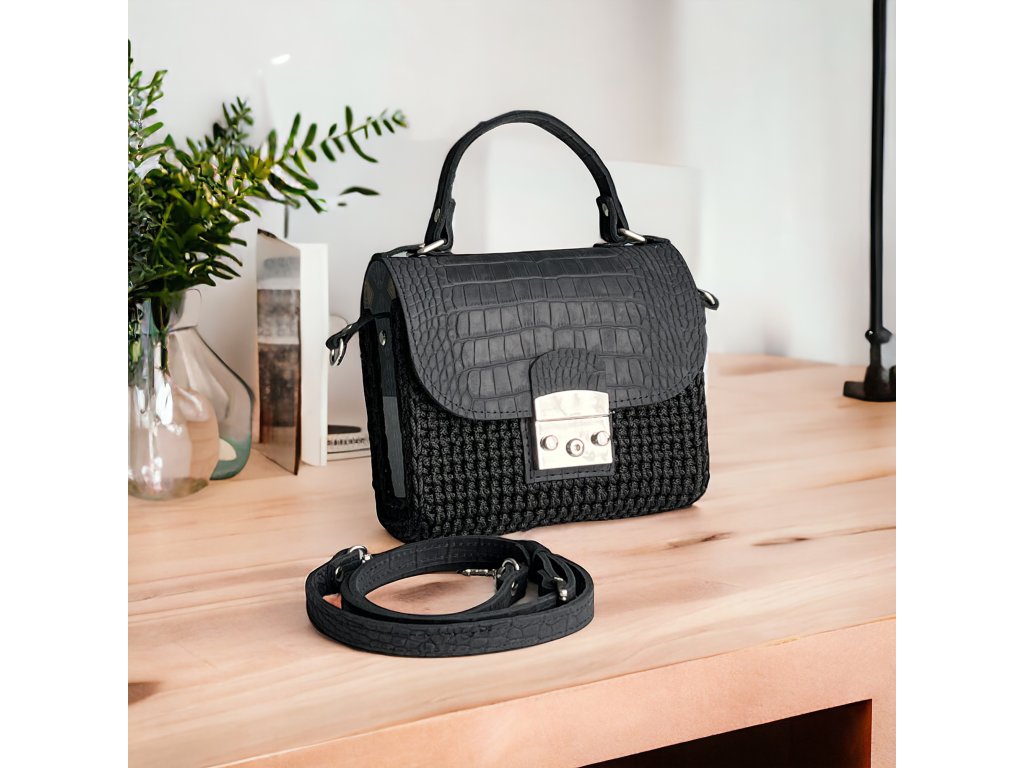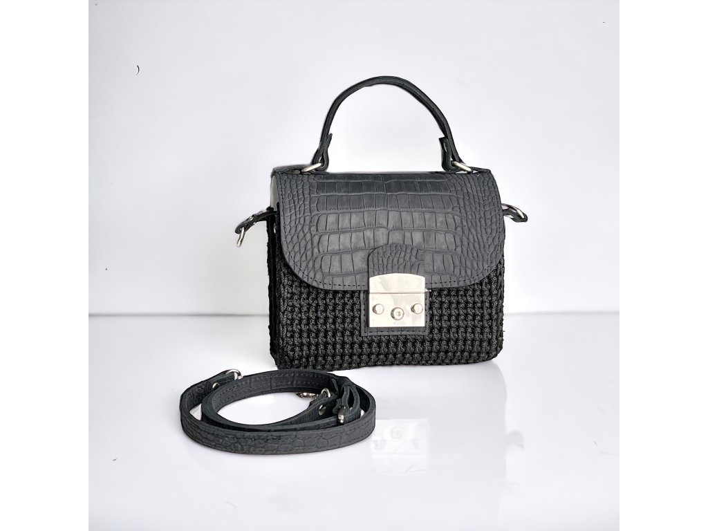 Gehäkelte Handtasche 'SOFIA LUX' / SCHWARZ Krokodil