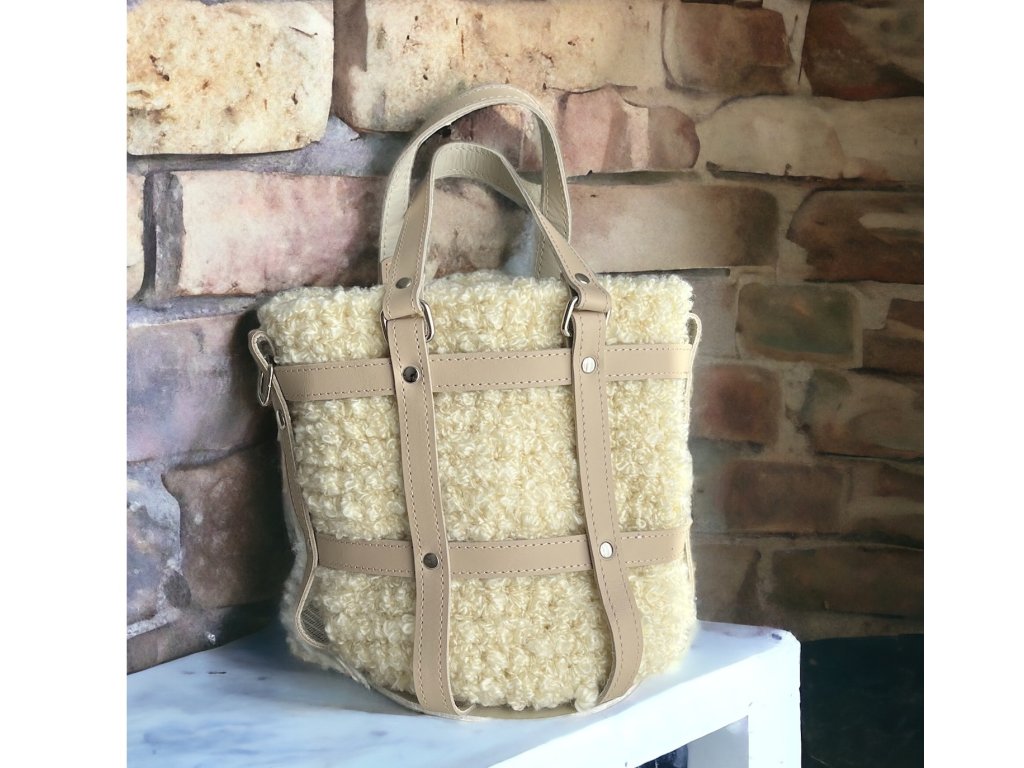 Elegante gehäkelte Tasche SHAU. Boden, Riemen aus echtem Leder, Baumwollfutter mit Tasche. Die Tasche wird mit einem Magnetknopf geschlossen. Ein zusätzlicher langer, verstellbarer Riemen von 120x2 cm ist ebenfalls erhältlich.