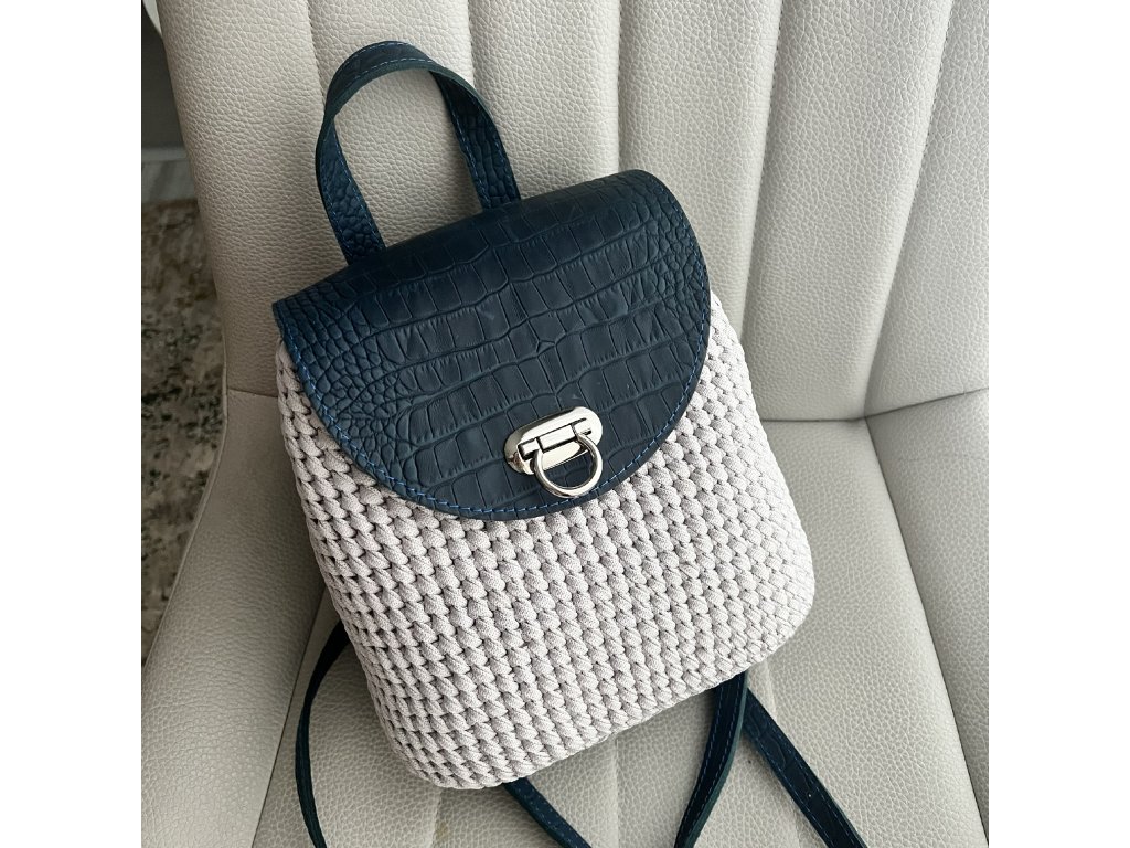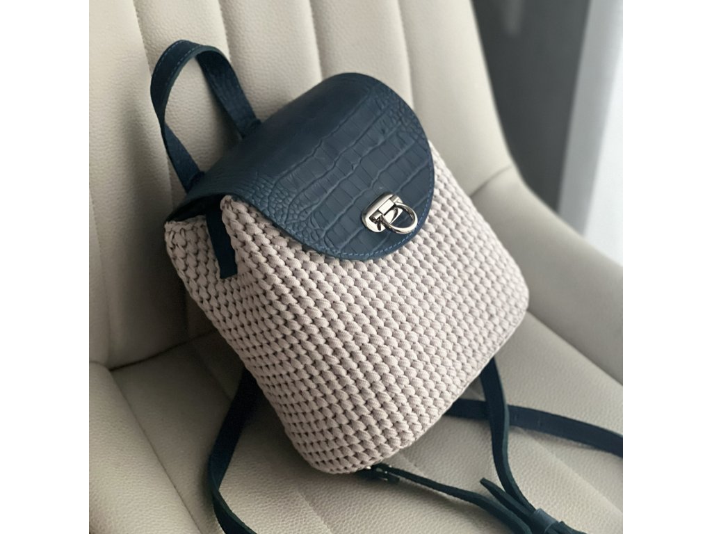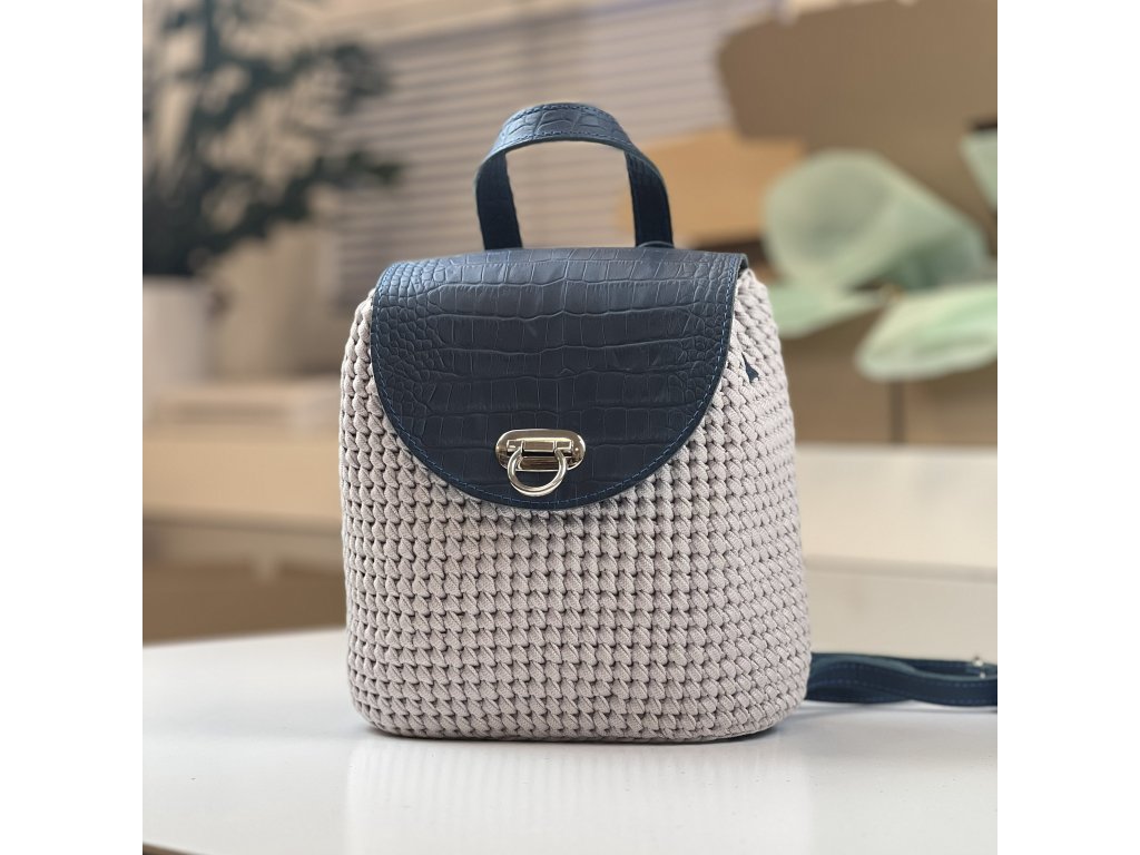 Gehäkelter Rucksack ASTI/ Blau-Grau