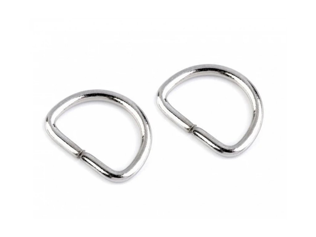Metallhalbring zur Befestigung eines Henkels an einer Handtasche oder Clutch. Er eignet sich auch zur Herstellung von Halsbändern für Haustiere. An der Verbindungsstelle ist er nicht verschweißt.