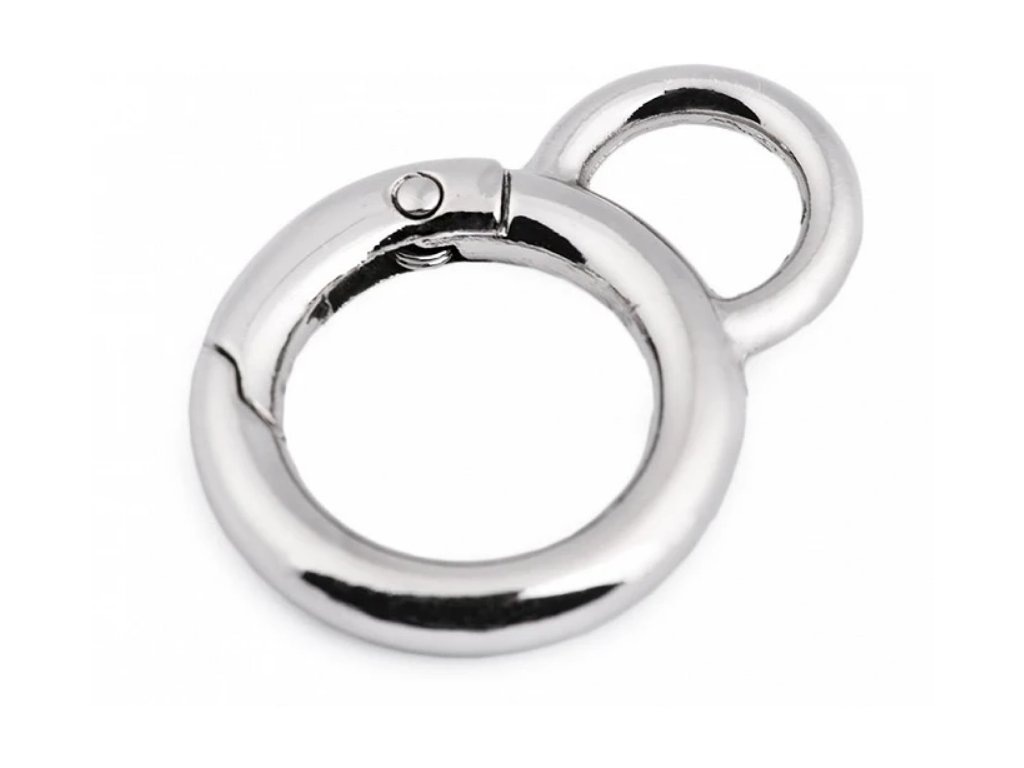 Metallkarabiner in Ringform wird zu einer einfachen und effektiven Lösung, die das einfache Anbringen von Schlüsselanhängern und verschiedenen Verzierungen an Handtaschen, Rucksäcken, Taschen usw. ermöglicht.
