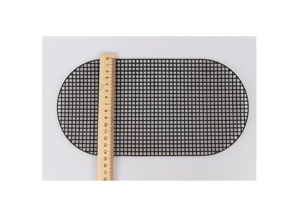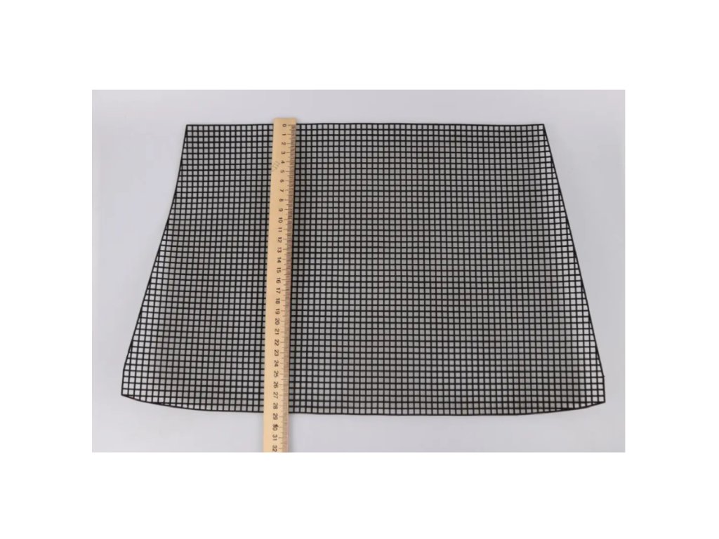 Kunststoffgitter ist flexibel und für die Tapiko-Technik bestimmt, bei der Garnstücke mit einer Häkelnadel am Gitter befestigt werden.