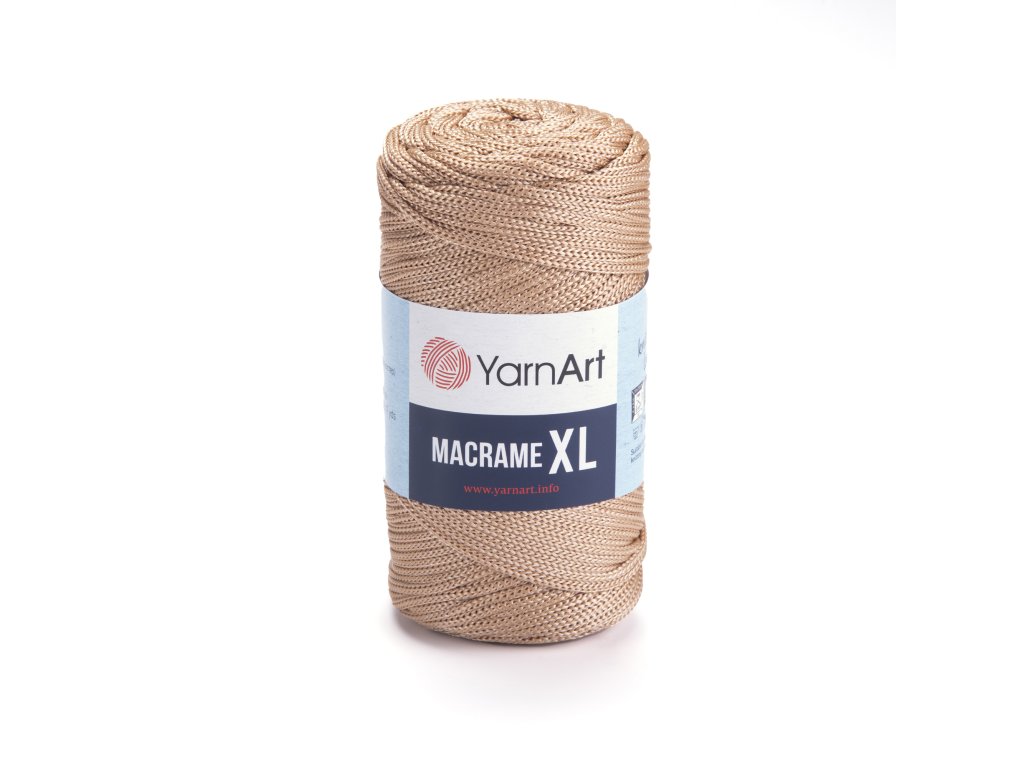 Macrame XL, ein brandneues geflochtenes Garn, eignet sich sowohl zum Stricken und Häkeln als auch für die Arbeit mit der Macrame-Technik. Das Garn hat die gleiche Struktur und alle Eigenschaften wie ein Polyester-Macrame-Faden, nur in einer stärkeren Variante. Sie können es für Ihre Wohnaccessoires wählen, wie Wanddekorationen, Vorhänge, Körbe, Tischsets, Puffs, Blumentöpfe und moderne Designs stilvoller Taschen. Dank seiner robusten Struktur behalten Ihre Produkte ihre Haltbarkeit über viele Jahre.