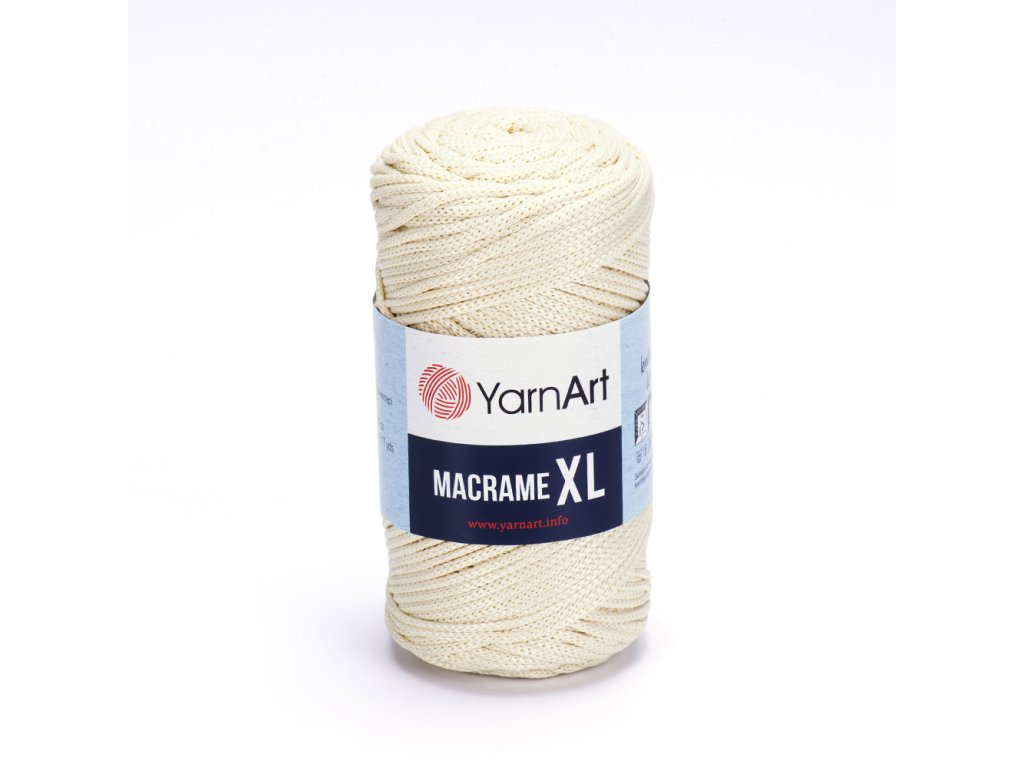 Macrame XL, ein brandneues geflochtenes Garn, eignet sich sowohl zum Stricken und Häkeln als auch für die Arbeit mit der Macrame-Technik. Das Garn hat die gleiche Struktur und alle Eigenschaften wie ein Polyester-Macrame-Faden, nur in einer stärkeren Variante. Sie können es für Ihre Wohnaccessoires wählen, wie Wanddekorationen, Vorhänge, Körbe, Tischsets, Puffs, Blumentöpfe und moderne Designs stilvoller Taschen. Dank seiner robusten Struktur behalten Ihre Produkte ihre Haltbarkeit über viele Jahre.