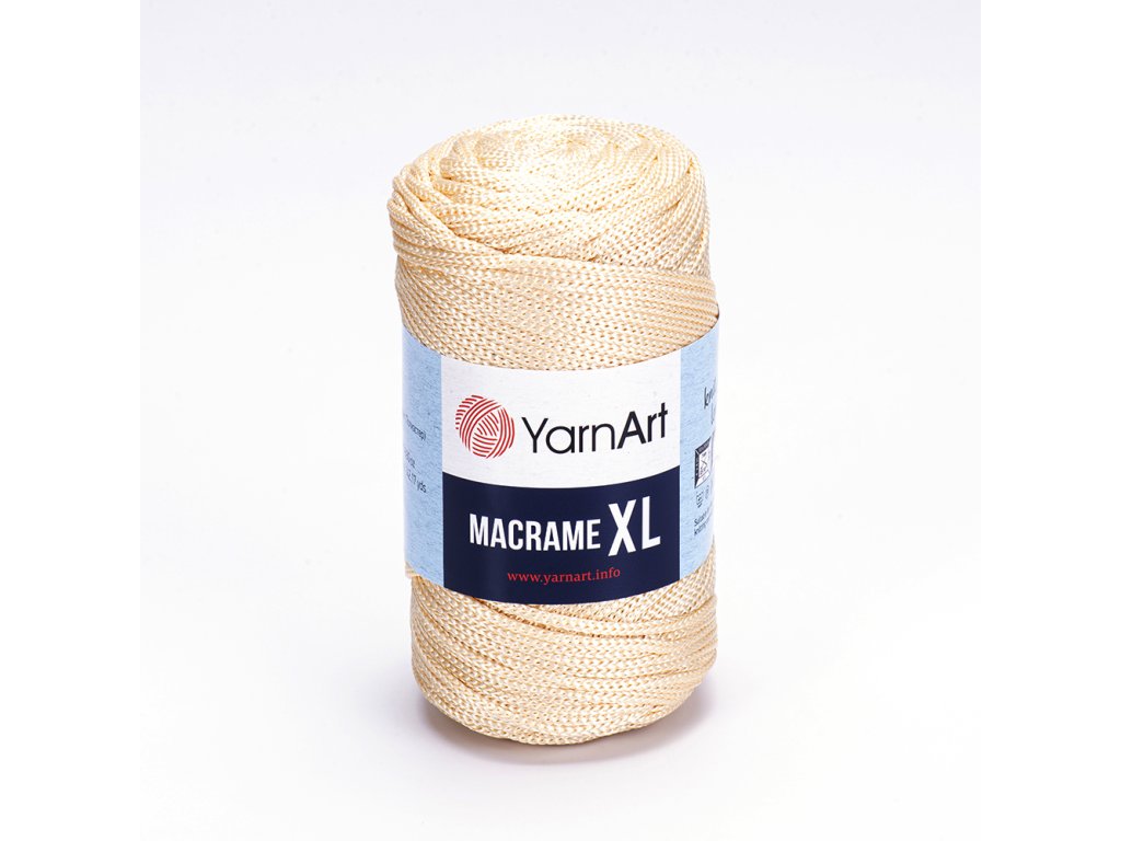 Macrame XL, ein brandneues geflochtenes Garn, eignet sich sowohl zum Stricken und Häkeln als auch für die Arbeit mit der Macrame-Technik. Das Garn hat die gleiche Struktur und alle Eigenschaften wie ein Polyester-Macrame-Faden, nur in einer stärkeren Variante. Sie können es für Ihre Wohnaccessoires wählen, wie Wanddekorationen, Vorhänge, Körbe, Tischsets, Puffs, Blumentöpfe und moderne Designs stilvoller Taschen. Dank seiner robusten Struktur behalten Ihre Produkte ihre Haltbarkeit über viele Jahre.