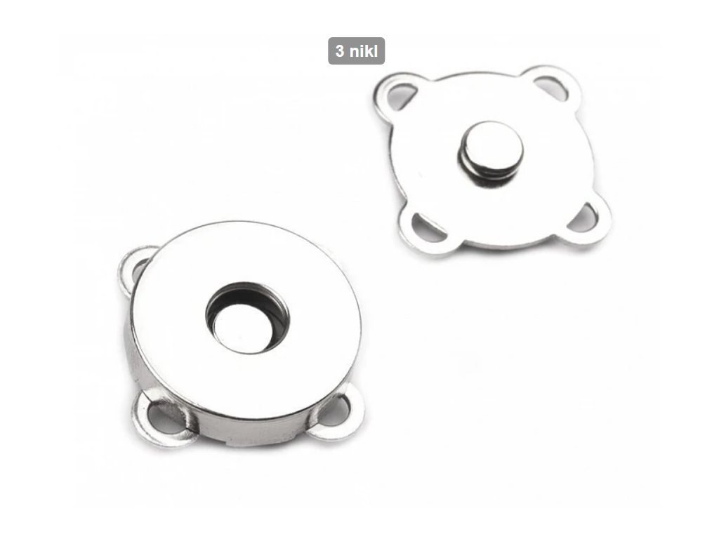 Magnetverschlüsse bestehen aus zwei Teilen, die gegenüberliegend auf die Kleidung genäht werden und aneinander gedrückt werden. Sie können es als Verschluss für festere Stoffe wie Jacken, Mäntel oder Westen verwenden.
