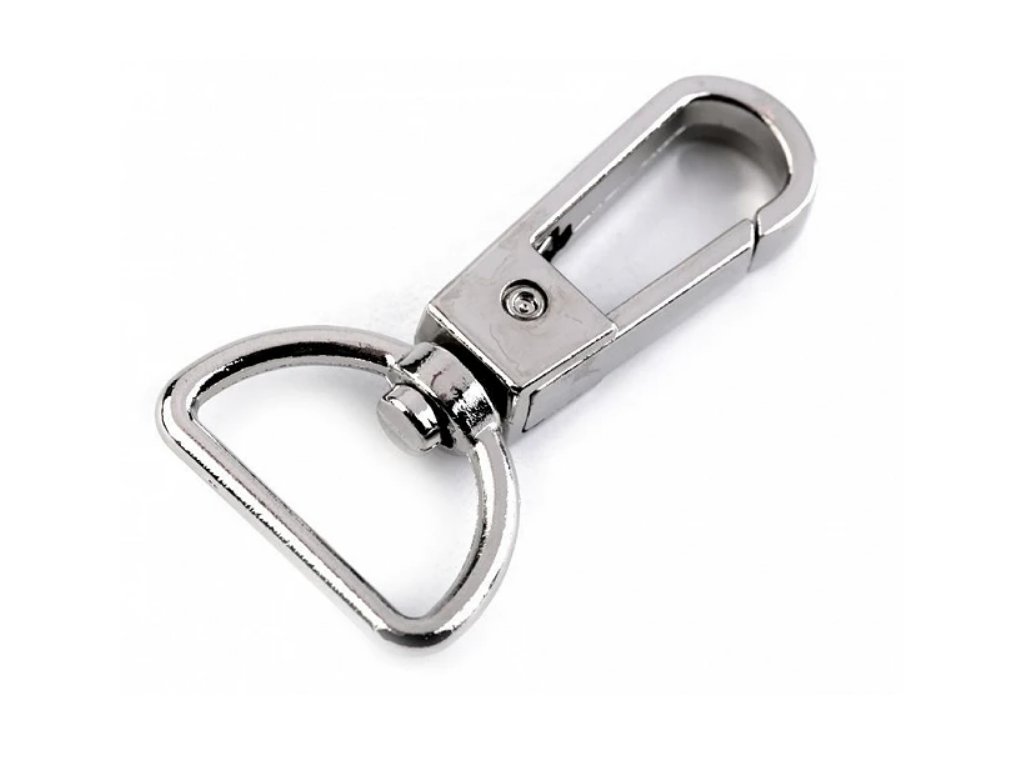Metallkarabiner ist drehbar. Sie können ihn zur Herstellung von Schlüsselanhängern, Hundeleinen oder zur Befestigung von Riemen an Taschen und Handtaschen verwenden.