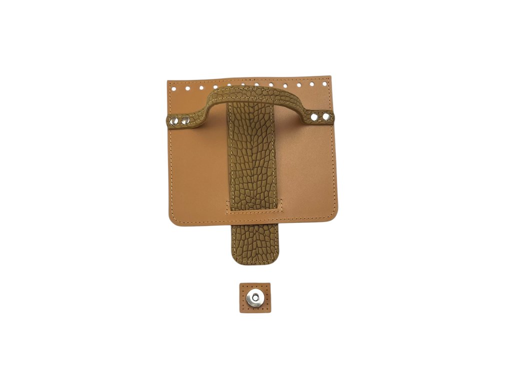 - Klappe mit Verschluss 18*16 cm, kurzer Griff, zwei Lederschichten, 12 vorgestanzte Löcher 3,5 mm. Rückseite der Klappe : Kunstleder