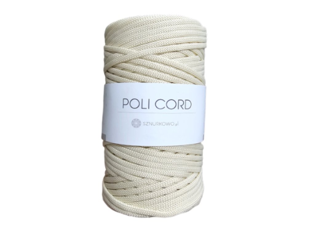 POLI CORD ist eine 5 mm flache Kordel mit mattem Aussehen, rutschfest, hergestellt aus Polyester. Geeignet für die Herstellung von Handtaschen, Taschen, Teppichen, Badematten, niedrigen Körben, Übertöpfen usw.