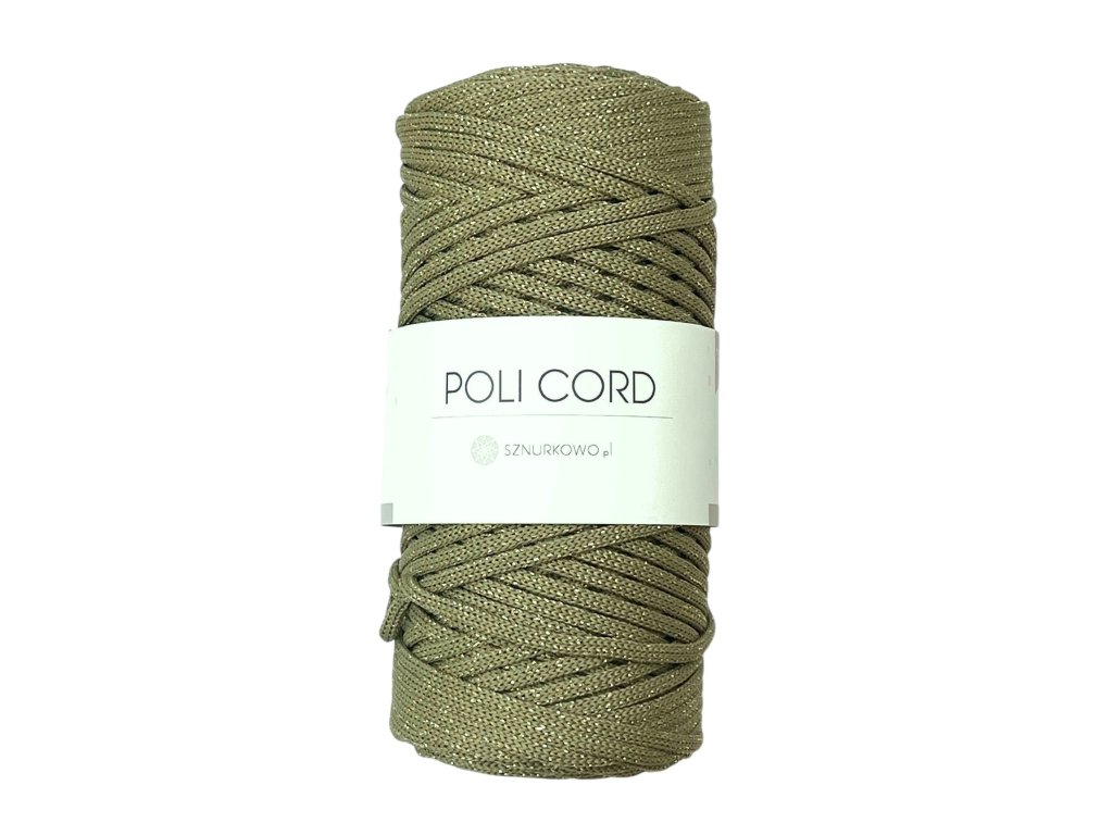 POLI CORD GLITTER Flachkordel 5 mm / Oliv - Gold