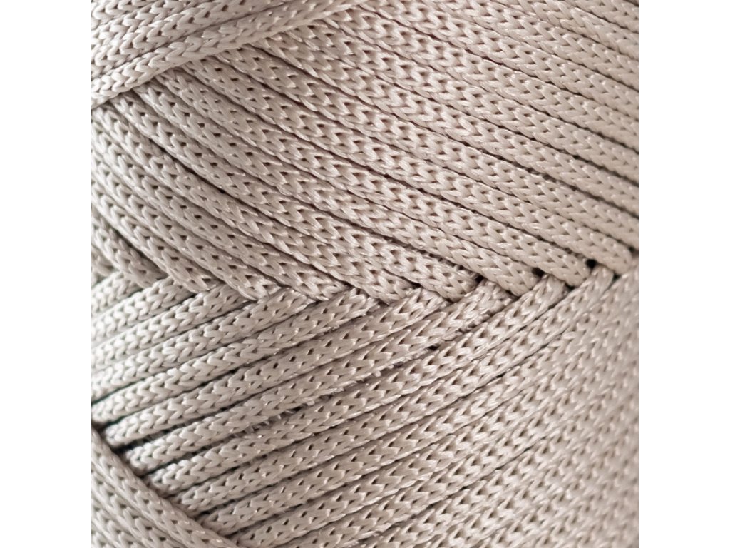 PP-Kordel. Die XL Macramé-Kordel aus Polypropylen hat eine dichte, geflochtene Struktur, wodurch sie sich kaum ausdehnt. Sie ist UV-beständig. Hergestellt wird sie aus hochwertiger Polypropylenfaser durch Flechten auf speziellen Maschinen. Die Kordel hat keinen Kern, was sie leicht und besonders geeignet für die Herstellung von geflochtenen Produkten macht.
