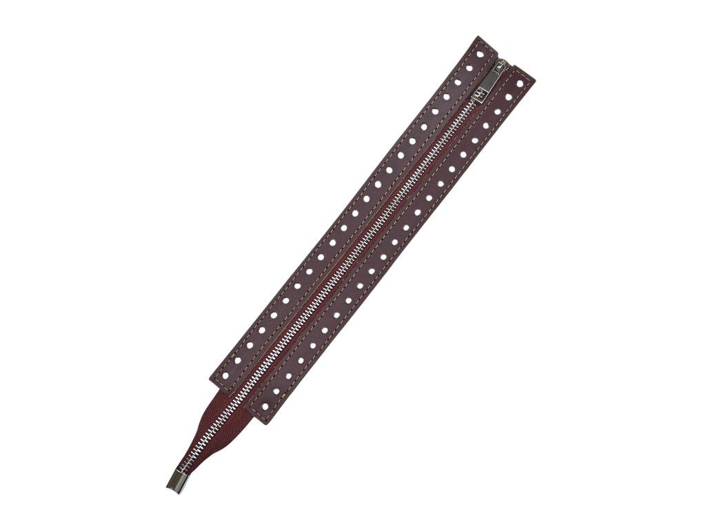 Metallreißverschluss für Handtasche oder Tasche, in Leder eingesetzt, Rückseite mit Kunstleder gefüttert.
