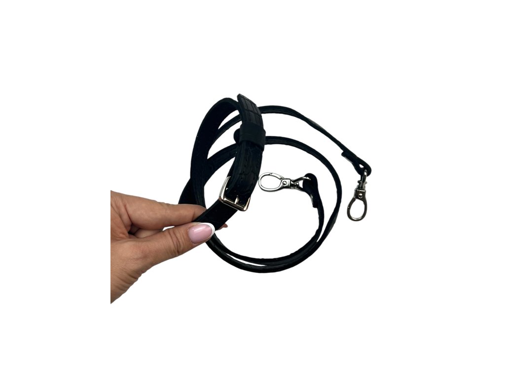 Schultergurt mit Karabinerhaken 120*1,5 cm / schwarzes Krokodil