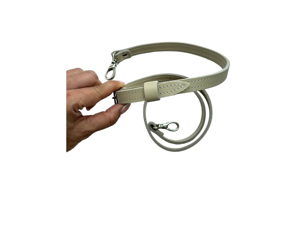 Langer, verstellbarer Schultergurt mit Karabinerhaken in zwei Lederschichten