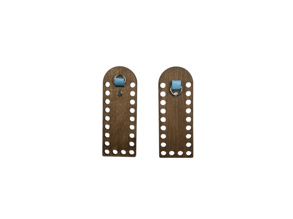 - Seitenteile aus Holz mit Halbkreisen 16x6 cm, an jedem Seitenteil 20 Löcher 10 mm