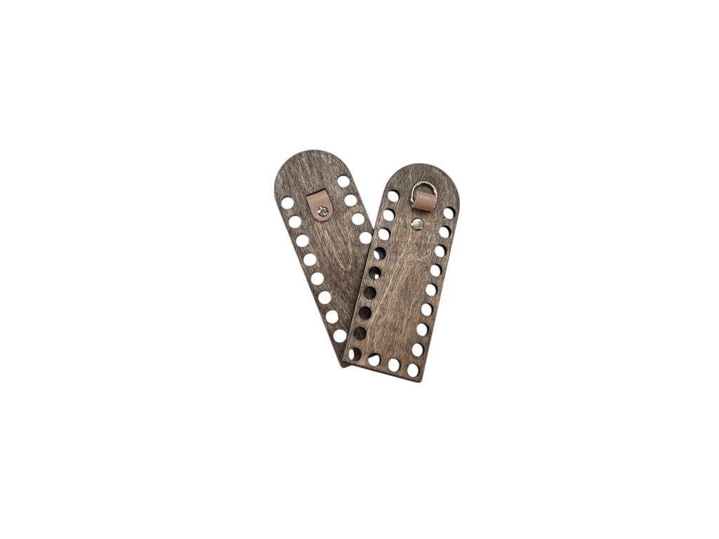 - Seitenteile aus Holz mit Halbkreisen 16x6 cm, an jedem Seitenteil 20 Löcher 10 mm