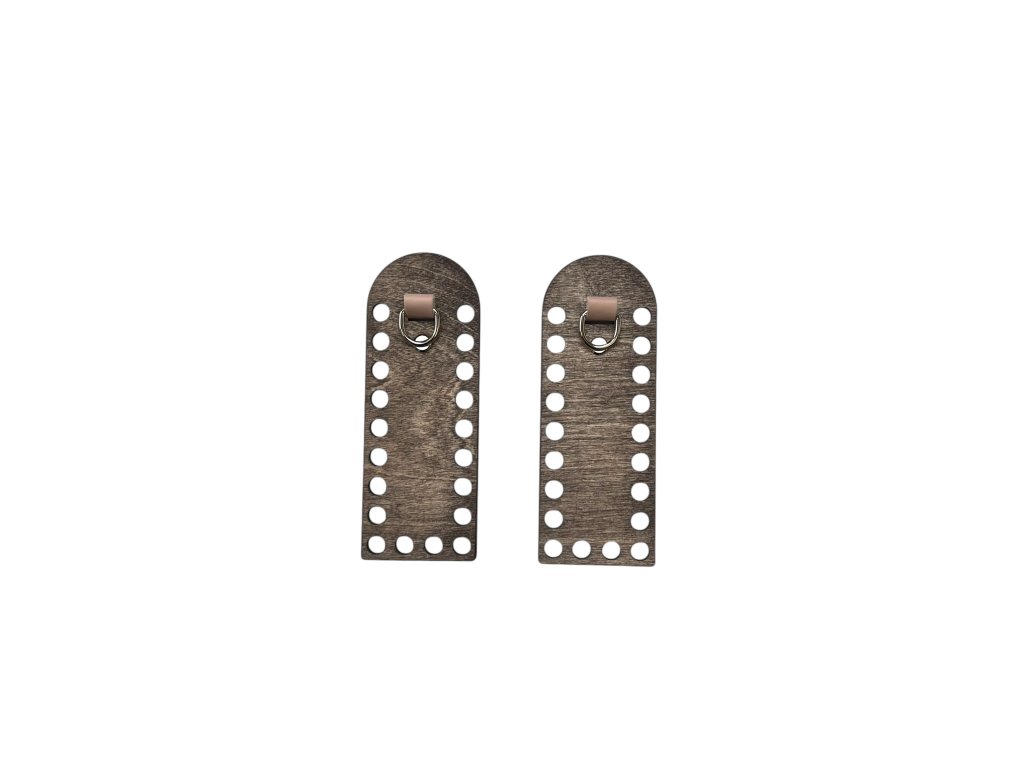 - Seitenteile aus Holz mit Halbkreisen 16x6 cm, an jedem Seitenteil 20 Löcher 10 mm