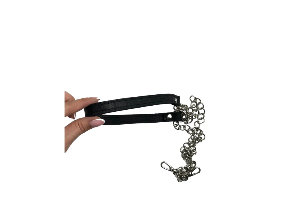 - langer Schultergurt mit Karabinerhaken in zwei Lederschichten und Kette, Größe: 120*1,5 cm