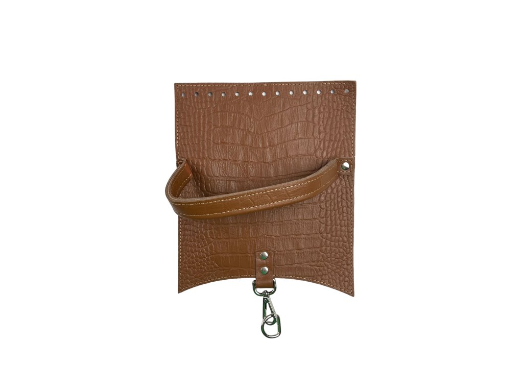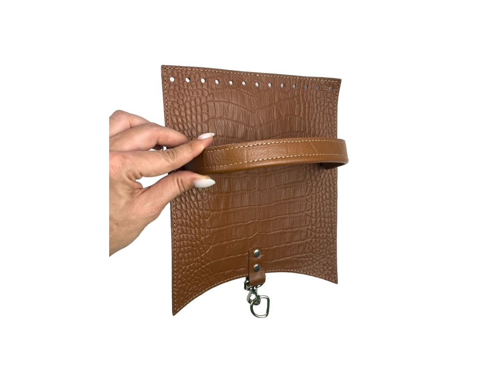 - Klappe mit Verschluss 20*24 cm, kurzer Griff, drei Lederschichten, braune Rückseite, 13 vorgestanzte 4 mm Löcher