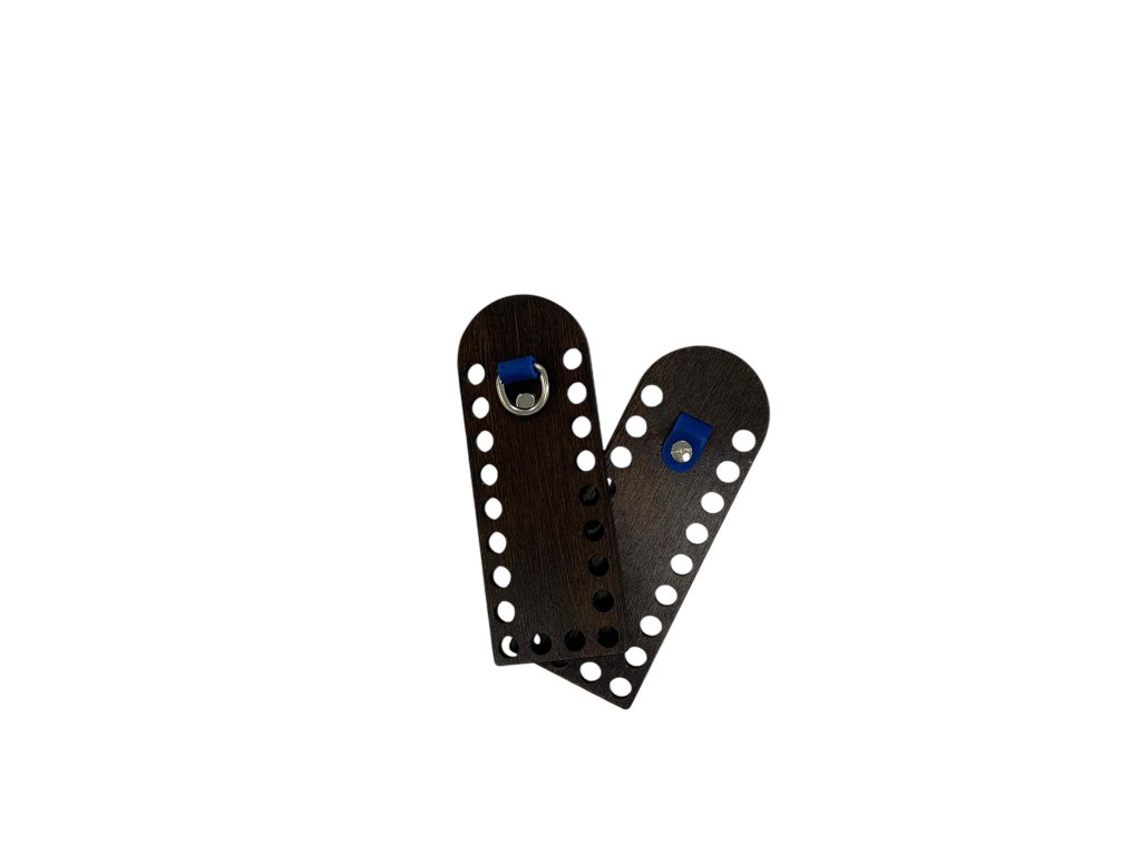 - Seitenteile aus Holz mit Halbkreisen 16x6 cm, an jedem Seitenteil 20 Löcher 10 mm