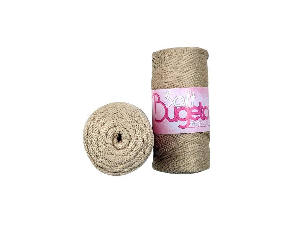 Soft Macrame ist eine 3,5 mm Schnur mit mattem Aussehen, rutschfest, hergestellt aus Premium-Polyester. Geeignet für die Herstellung von Handtaschen, Taschen, Teppichen, Badematten, niedrigen Körben, Übertöpfen usw.