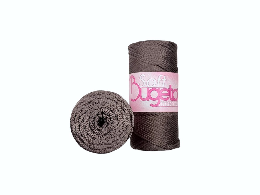Soft Macrame ist eine 3,5 mm Schnur mit mattem Aussehen, rutschfest, hergestellt aus Premium-Polyester. Geeignet für die Herstellung von Handtaschen, Taschen, Teppichen, Badematten, niedrigen Körben, Übertöpfen usw.