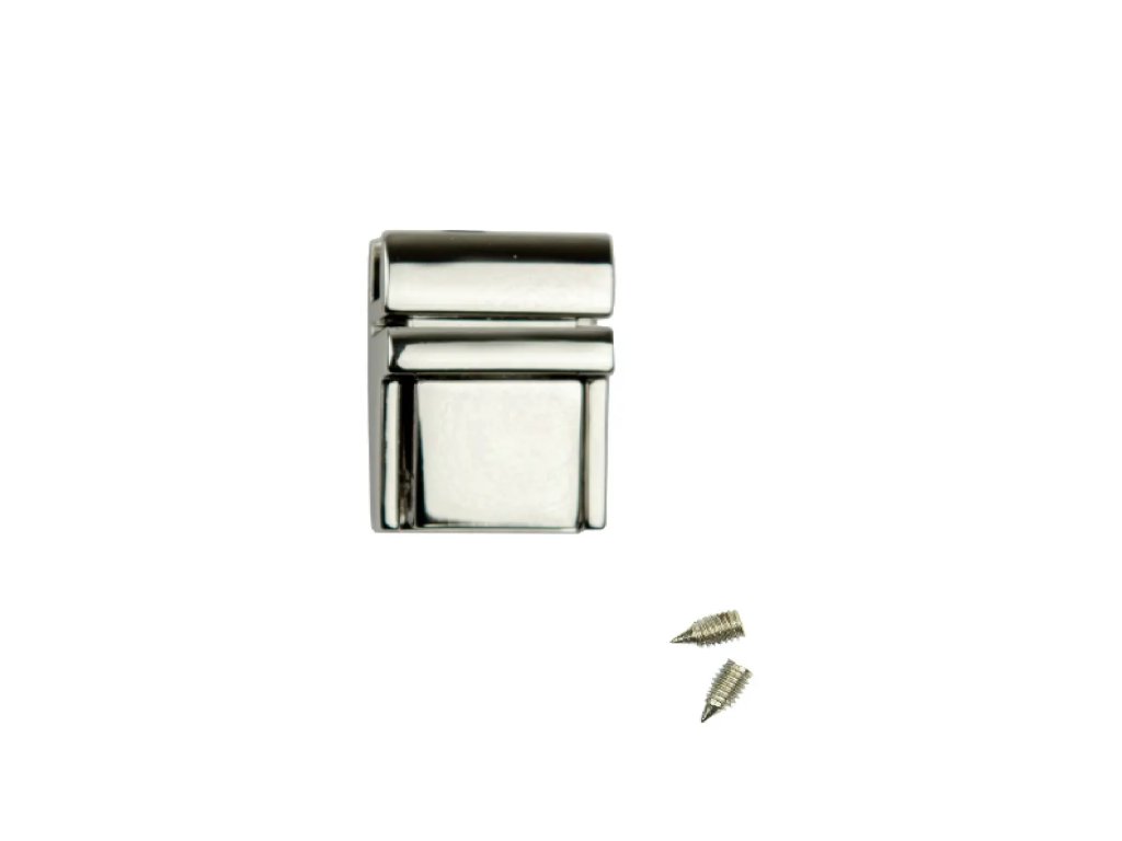 Ein komfortables Premium-Schloss für Ihre Tasche oder Clutch. Es hat eine rechteckige Form und ist klein genug, um Ihrem Produkt Eleganz zu verleihen. Das Schloss wird als zweiteiliges Set zusammen mit allen notwendigen Befestigungselementen geliefert. Das Schloss lässt sich durch Drücken einer Taste öffnen, die das Schloss auslöst und entriegelt.