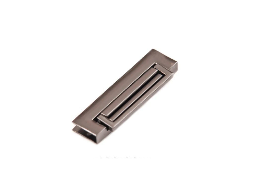 Der Verschluss für eine Handtasche oder Tasche besteht aus drei Teilen. Der obere Teil des Schlosses, 4 mit einer Sattelbreite von 5 mm. Er wird mit drei Schrauben am Deckel befestigt.