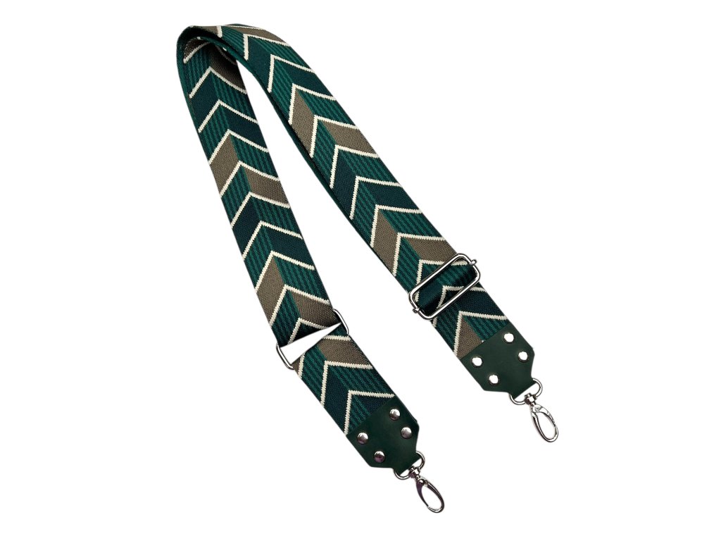 Textil verstellbarer Schultergurt hat auf jeder Seite einen Metallkarabiner, sodass er leicht an einer Handtasche oder Tasche befestigt werden kann. Die Länge kann dank des Schiebers reguliert werden.