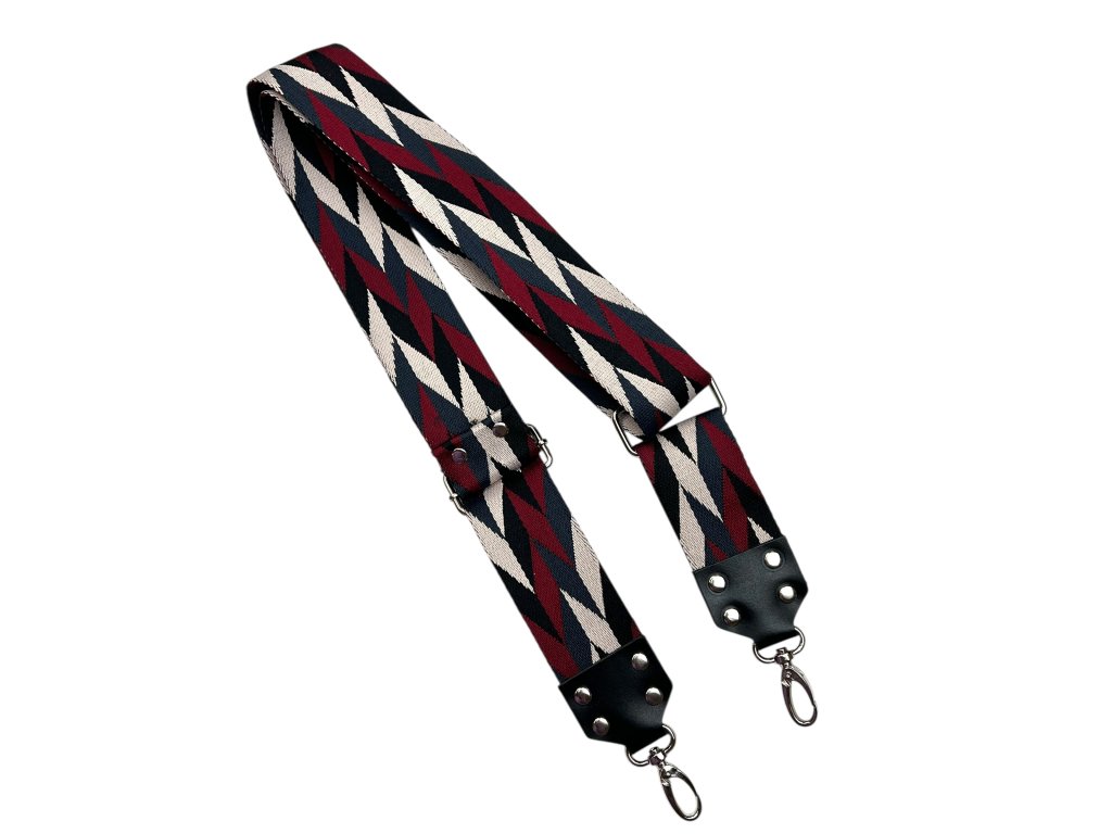 Textil-Tragegurt mit Karabinern 5 cm / Grau–Weiß–Marsala–Schwarz