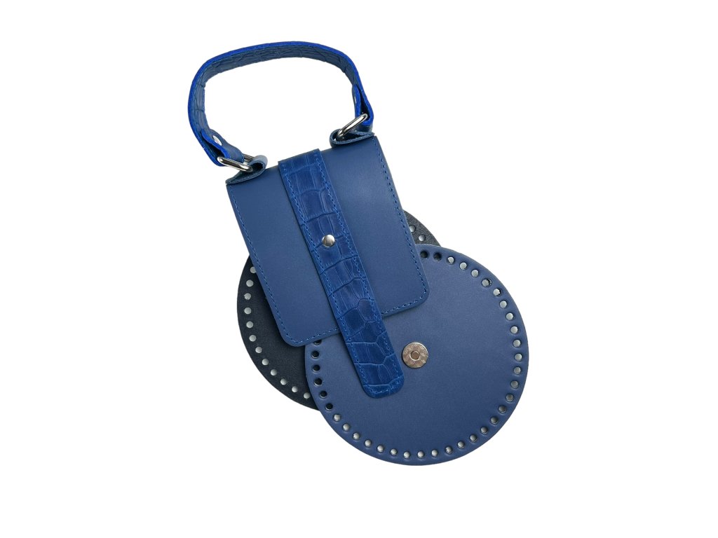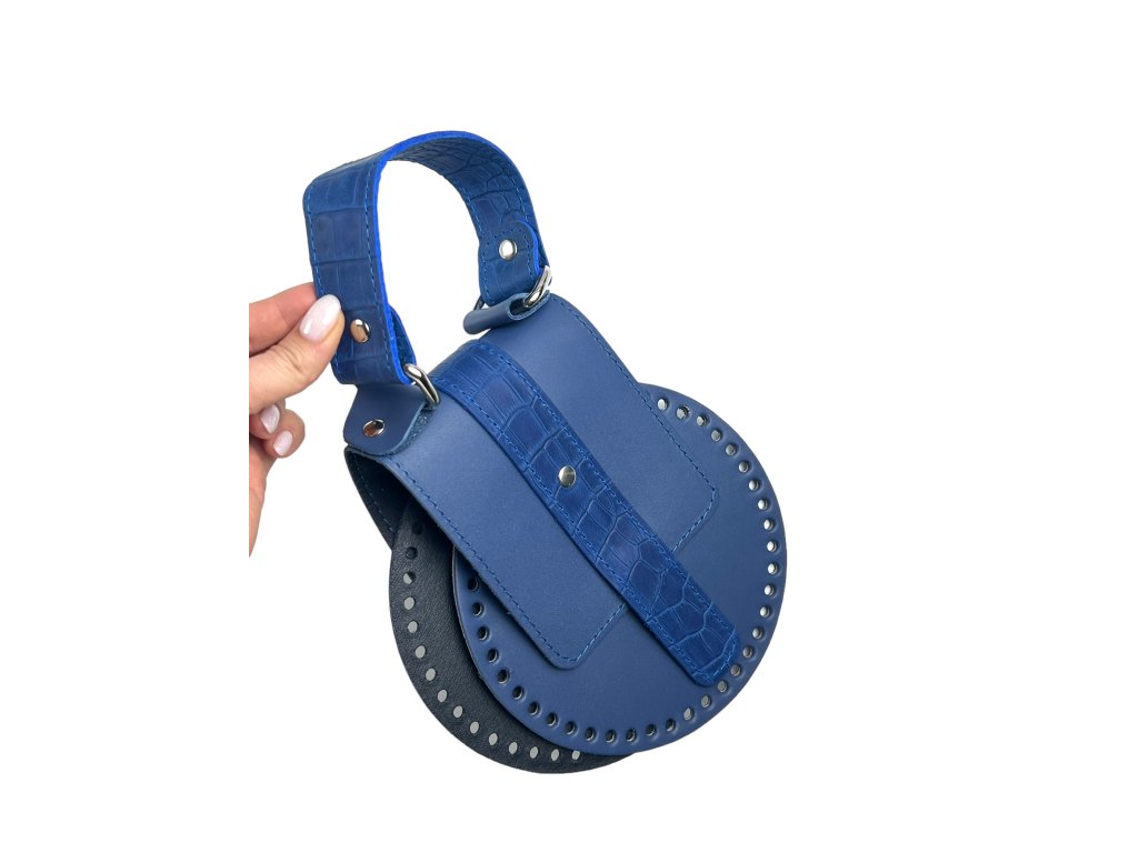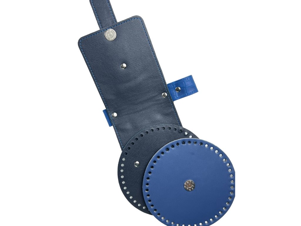 - Hinteres Teil Durchmesser 15,8 cm, Klappe mit Magnetverschluss 24*10,5 cm, Farbe der Rückseite schwarz, 46 vorgestanzte Löcher 4 mm und Griff in zwei Lederschichten 23*2,7 cm