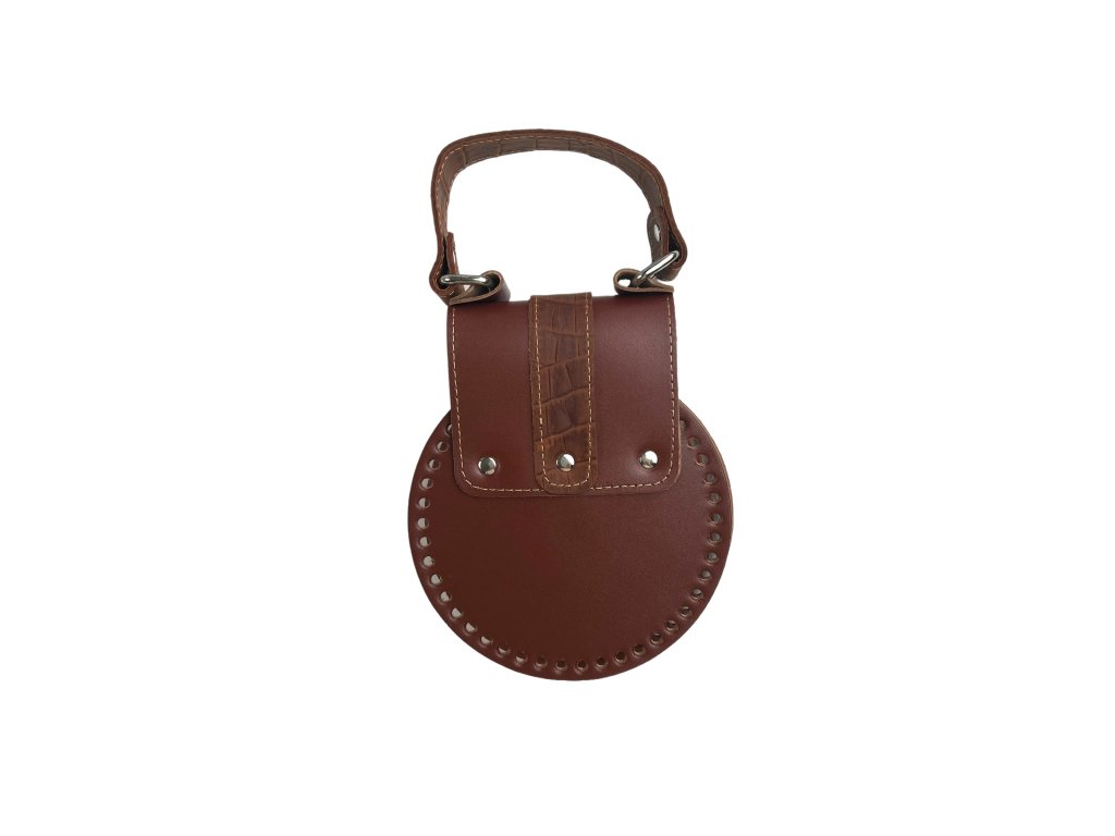 - Hinteres Teil Durchmesser 15,8 cm, Klappe mit Magnetverschluss 24*10,5 cm, Farbe der Rückseite schwarz, 46 vorgestanzte Löcher 4 mm und Griff in zwei Lederschichten 23*2,7 cm